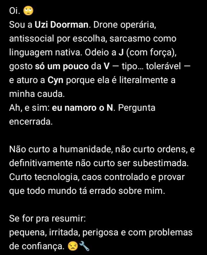 Home Entertainment . 1 hora ago 1 hora ago Entertainment . by Sukihero 0views 792 Eu acho que meu ChatGPT tá bugado Fonte Post PaginationPrevious PostPreviousNext PostNext Like it? Share with your friends! 792 What's Your Reaction? hate 0 hate confused 0 confused fail 0 fail fun 0 fun geeky 0 geeky love 0 love lol 0 lol omg 0 omg win 0 win 0 Comments Cancelar respostaO seu endereço de e-mail não será publicado. Campos obrigatórios são marcados com * Salvar meus dados neste navegador para a próxima vez que eu comentar.