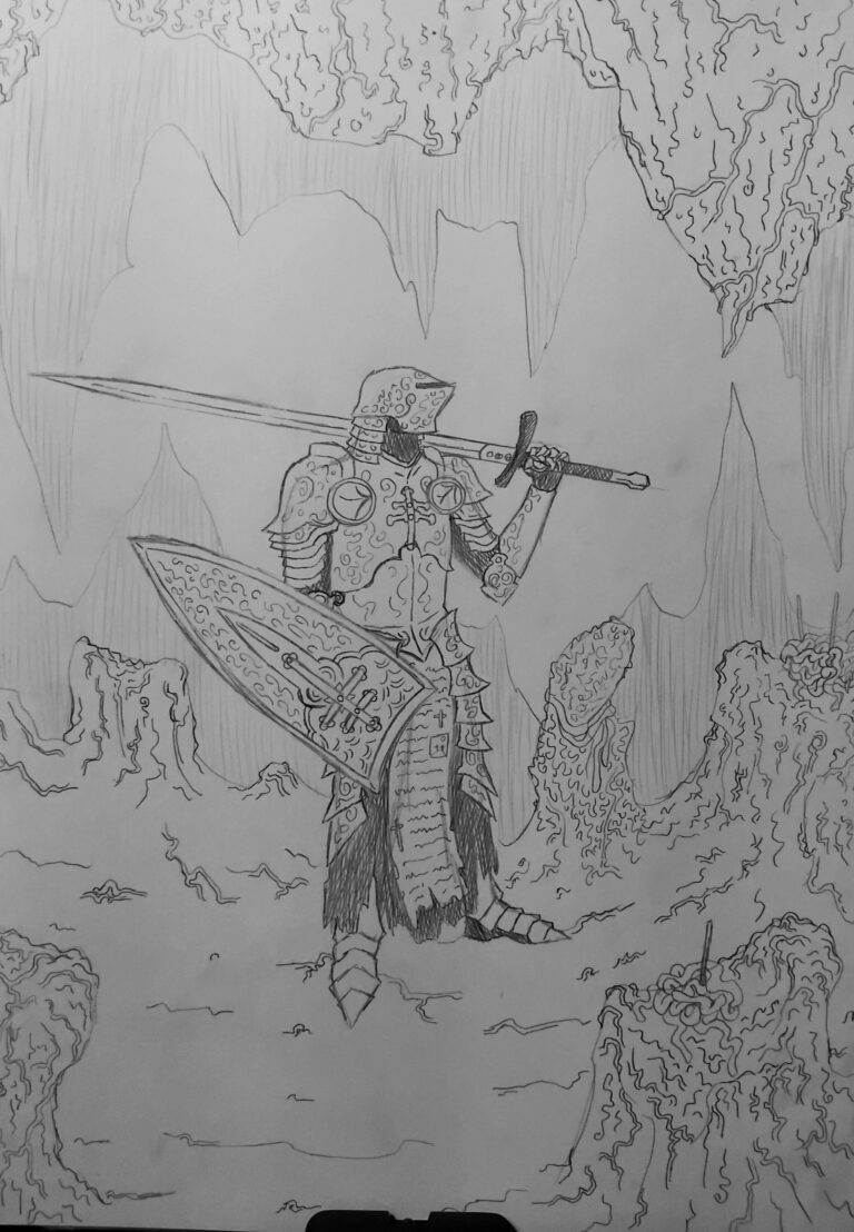 Nessa minha Fanart ele está sozinho no mundos demônios cumprindo a missão de decepar a cabeça da serpente maligna.