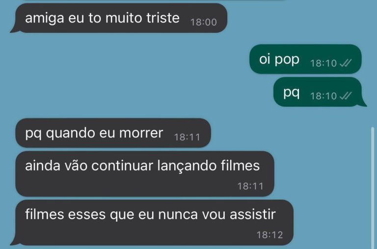 Pior é saber que você vai morrer sem assistir tudo o que já lançou porque não dá tempo. Então, cada vez que você vê algo, está preenchendo uma seleta lista de coisas que você assistiu na sua vida. E isso vale pra filmes, livros, música, jogos, etc
