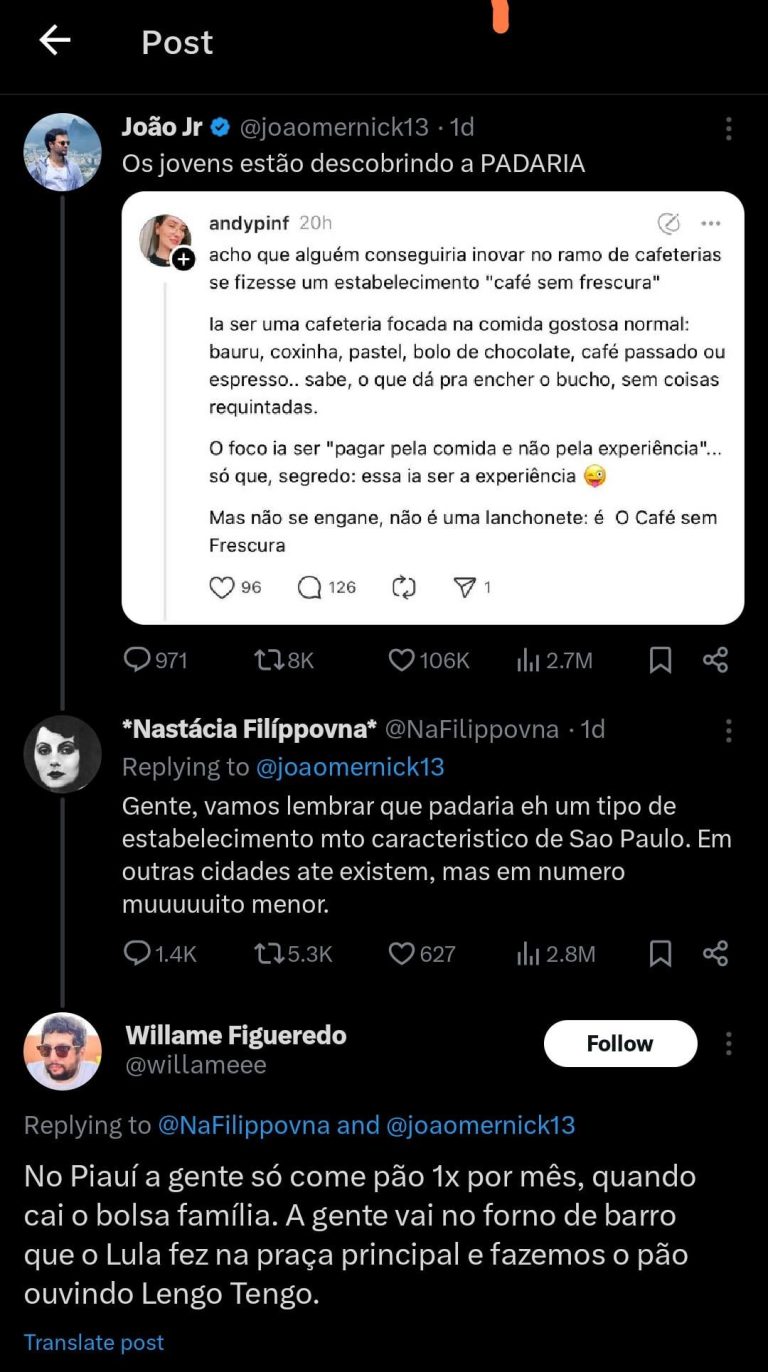 2. Sou do nordeste e quando queremos a iguaria “pão” temos que ir na lojinha de importados comprar os ingredientes e ver vídeo de gringo no YouTube ensinando a fazer. Não fica igual, mas a gente pelo menos tem contato com a iguaria.