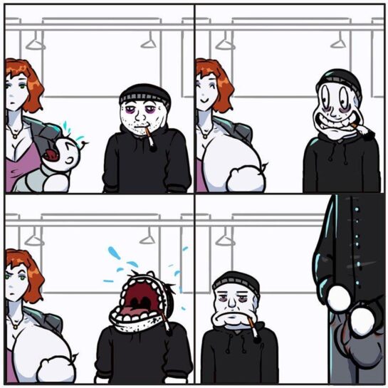 O mais engraçado disso é saber o quão somos solitários ao ponto de usarmos memes para rirmos e esquecermos momentaneamente do vazio q nos corrói...