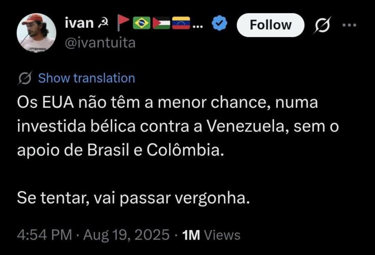 Home Entertainment Deu mais trabalho capturar o Lázaro do que o Maduro 2 horas ago 2 horas ago Entertainment Deu mais trabalho capturar o Lázaro do que o Maduro by Sukihero 0views 843 1 Deu mais trabalho capturar o Lázaro do que o Maduro Fonte Post PaginationPrevious PostPreviousNext PostNext Like it? Share with your friends! 843 1 What's Your Reaction? hate 0 hate confused 0 confused fail 0 fail fun 0 fun geeky 0 geeky love 0 love lol 0 lol omg 0 omg win 0 win One Comment Cancelar respostaO seu endereço de e-mail não será publicado. Campos obrigatórios são marcados com * Salvar meus dados neste navegador para a próxima vez que eu comentar. É que o Lázaro tava verde o maduro já está maduro Responder