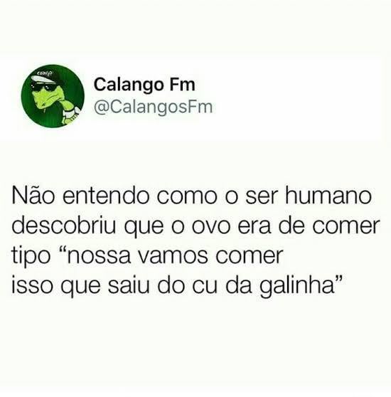 Humano: ” ver animais comendo ovos”, “humano pensa em comer também” *mastiga ovo de galinha percebe que tem gosto ruim” *anotado*