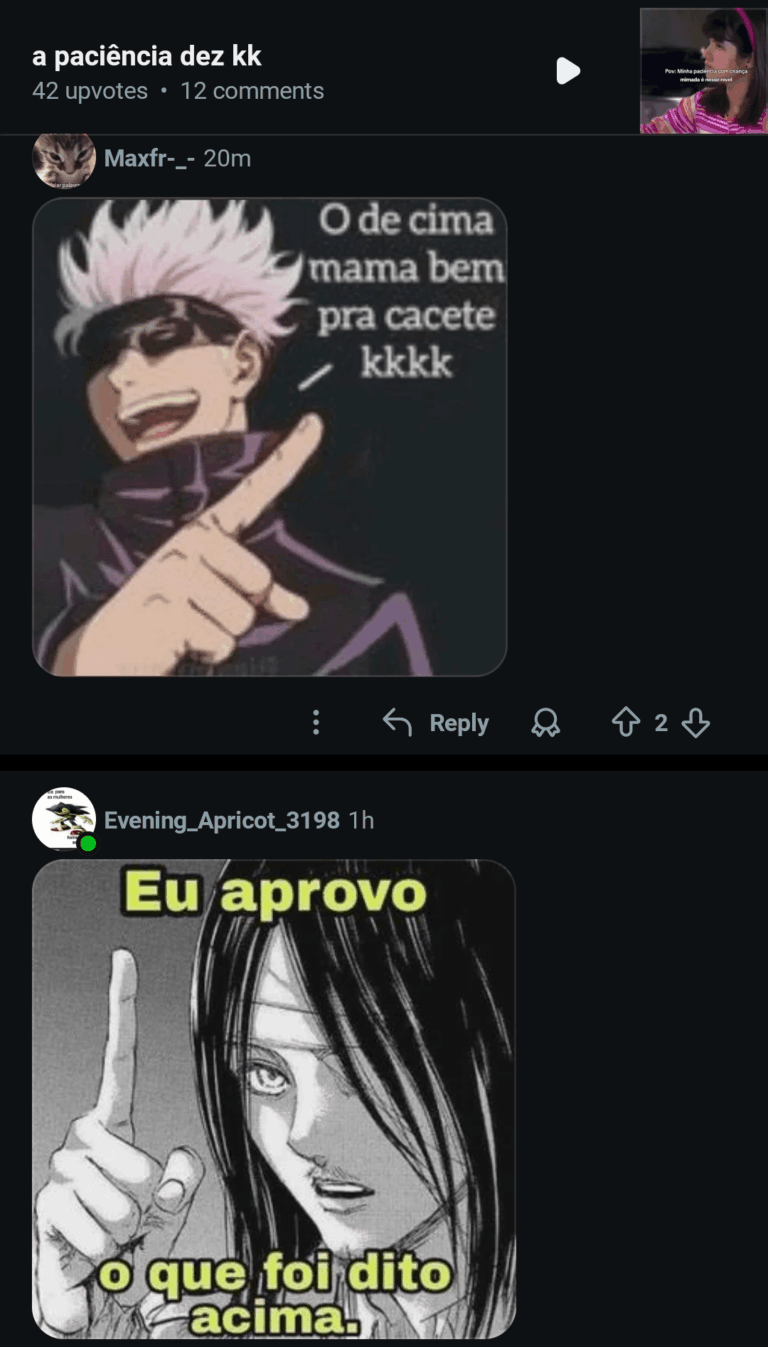Home Entertainment Eu aprovo. 22 horas ago 22 horas ago Entertainment Eu aprovo. by Sukihero 0views 801 1 Eu aprovo. Fonte Post PaginationPrevious PostPreviousNext PostNext Like it? Share with your friends! 801 1 What's Your Reaction? hate 0 hate confused 0 confused fail 0 fail fun 0 fun geeky 0 geeky love 0 love lol 0 lol omg 0 omg win 0 win One Comment Cancelar respostaO seu endereço de e-mail não será publicado. Campos obrigatórios são marcados com * Salvar meus dados neste navegador para a próxima vez que eu comentar. E qual era o de cima? Responder