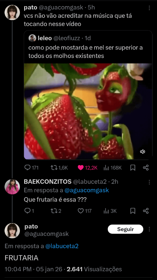 Home Entertainment FRUTARIA 1 dia ago 1 dia ago Entertainment FRUTARIA by Sukihero 0views 799 FRUTARIA Fonte Post PaginationPrevious PostPreviousNext PostNext Like it? Share with your friends! 799 What's Your Reaction? hate 0 hate confused 0 confused fail 0 fail fun 0 fun geeky 0 geeky love 0 love lol 0 lol omg 0 omg win 0 win 0 Comments Cancelar respostaO seu endereço de e-mail não será publicado. Campos obrigatórios são marcados com * Salvar meus dados neste navegador para a próxima vez que eu comentar.