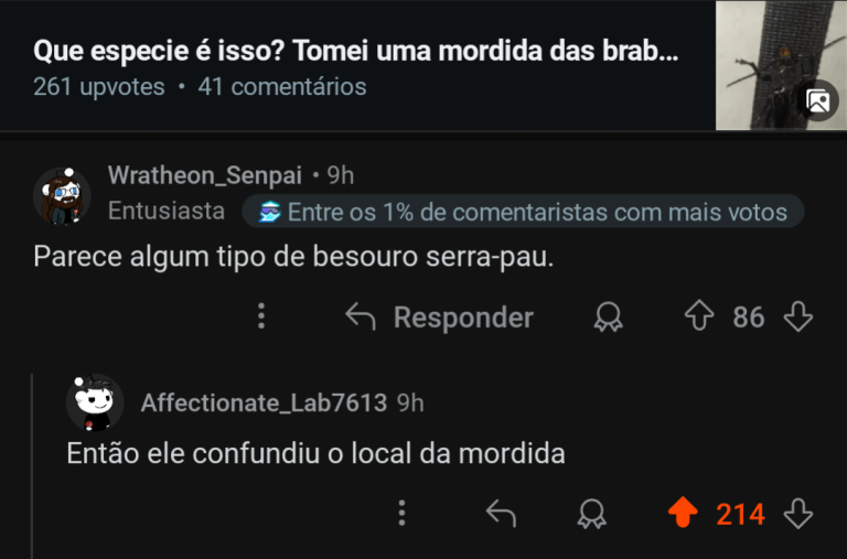 Esse é o besouro serra-pau. Ele serra (corta) paus de madeira. Você acha que se fosse o tipo de pau que o cara tá pensando, esse pau ia ser serrado ou cortado fora?