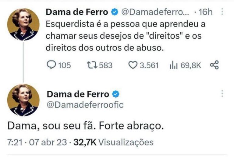 Dama, sou seu fã. Forte abraço. Fonte