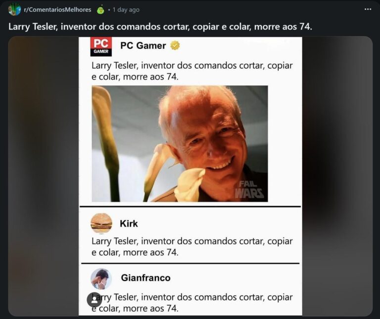 Larry Tesler, inventor dos comandos cortar, copiar e colar, morre aos 74. Fonte