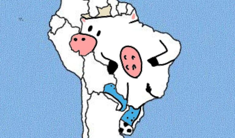 O brasil é uma vaca usando o paraguai como chuteira e chutando o uruguai Fonte