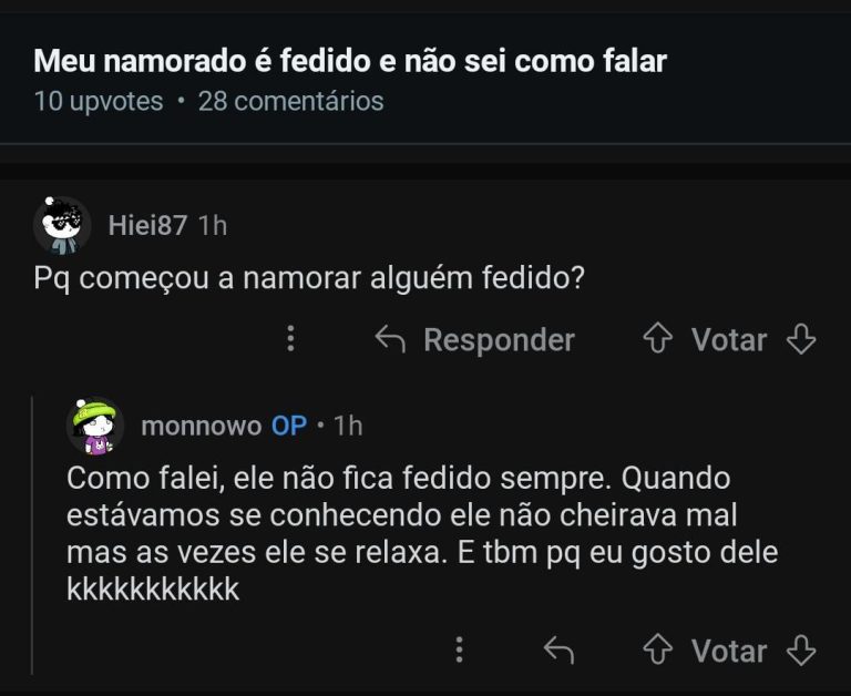 Não é o intuito da comunidade mas só seja direta com seu namorado e fica que ele fede