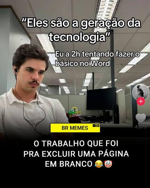 Home Entertainment Sabe desbloquear um celular mas não sabe criar uma planilha no Word, enfim a hipocrisia 2 horas ago 2 horas ago Entertainment Sabe desbloquear um celular mas não sabe criar uma planilha no Word, enfim a hipocrisia by Sukihero 0views 879 Sabe desbloquear um celular mas não sabe criar uma planilha no Word, enfim a hipocrisia Fonte Post PaginationPrevious PostPreviousNext PostNext Like it? Share with your friends! 879 What's Your Reaction? hate 0 hate confused 0 confused fail 0 fail fun 0 fun geeky 0 geeky love 0 love lol 0 lol omg 0 omg win 0 win 0 Comments Cancelar respostaO seu endereço de e-mail não será publicado. Campos obrigatórios são marcados com * Salvar meus dados neste navegador para a próxima vez que eu comentar.