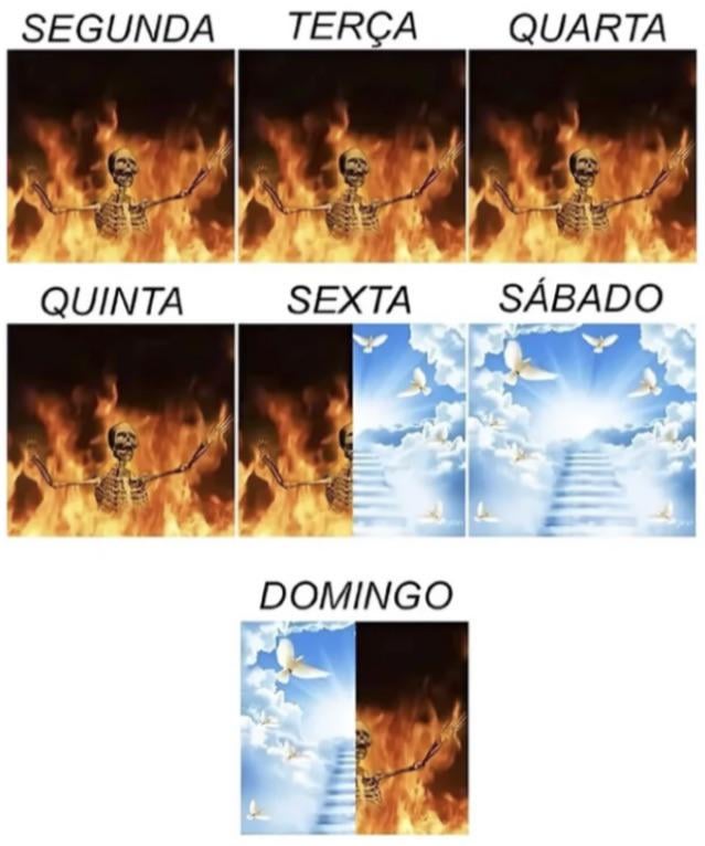 Só 6h de fim de semana e 8 anos pro resto da semana… https://preview.redd.it/wtbix846ryzf1.jpeg?width=1080&format=pjpg&auto=webp&s=45bf59013a5dc16f15d7d83bbb4b9877de809d1b Responder