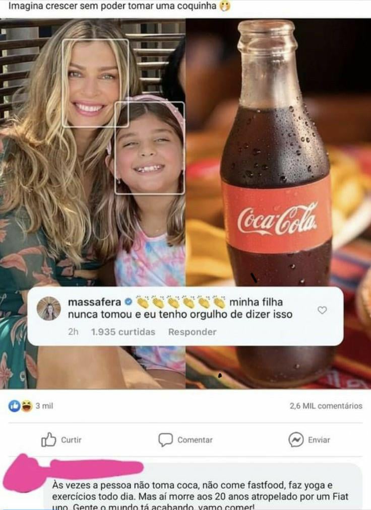 Você não toma coc pq não é saudável. Eu não tomo coca por causa da BDS. Não somos a mesma coisa